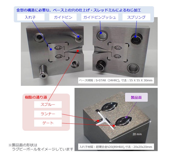 小さなプラスチック部品の射出成形を行う金型を模擬した、加工サンプル事例を紹介します。