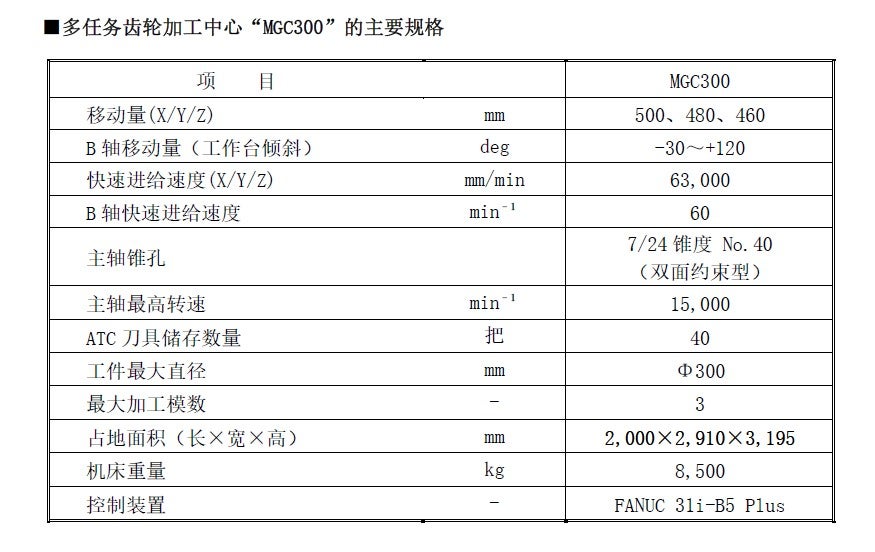 多任务齿轮加工中心“MGC300”特点