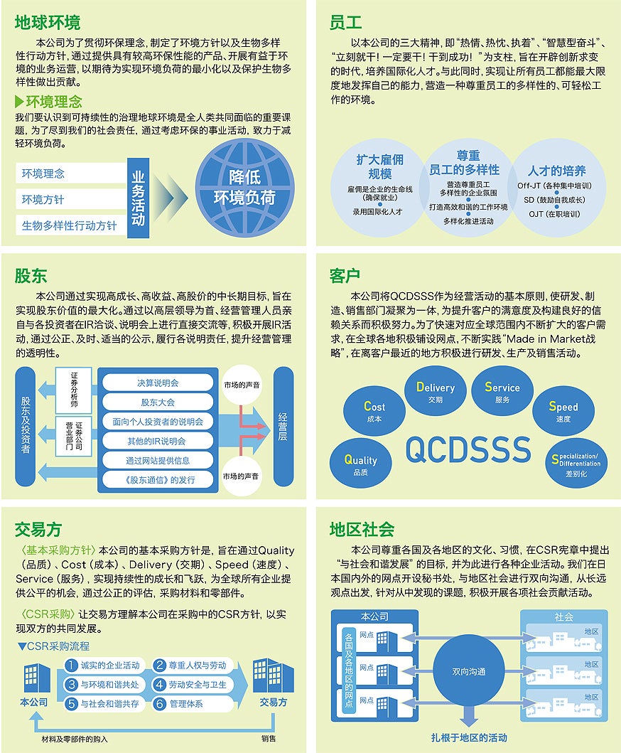 - ■ 我们在以高度公正性和透明性公开信息的同时,积极开展与股东、客户、交易方、员工等利益相关方的双向交流,以取得社会的信赖。