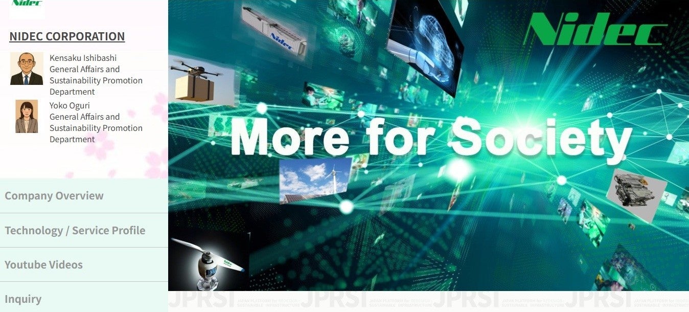 NIDEC集团加入了日本环境省设立的官民合作平台JPRSI(环境基础设施海外推广平台),该平台旨在推动环境技术的海外拓展。我们通过参与JPRSI,在2025年巴西联邦共和国贝伦市举行的联合国气候变化框架公约第30次缔约方会议(COP30)上,在环境省设立的日本虚拟展馆中进行了展出。