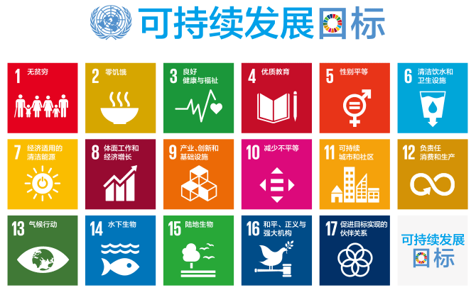 在2015年9月的联合国大会上通过的《改变我们的世界:2030年可持续发展议程》,提出了国际社会消除贫困、实现可持续发展社会的17个目标(Sustainable Development Goals:SDGs)。