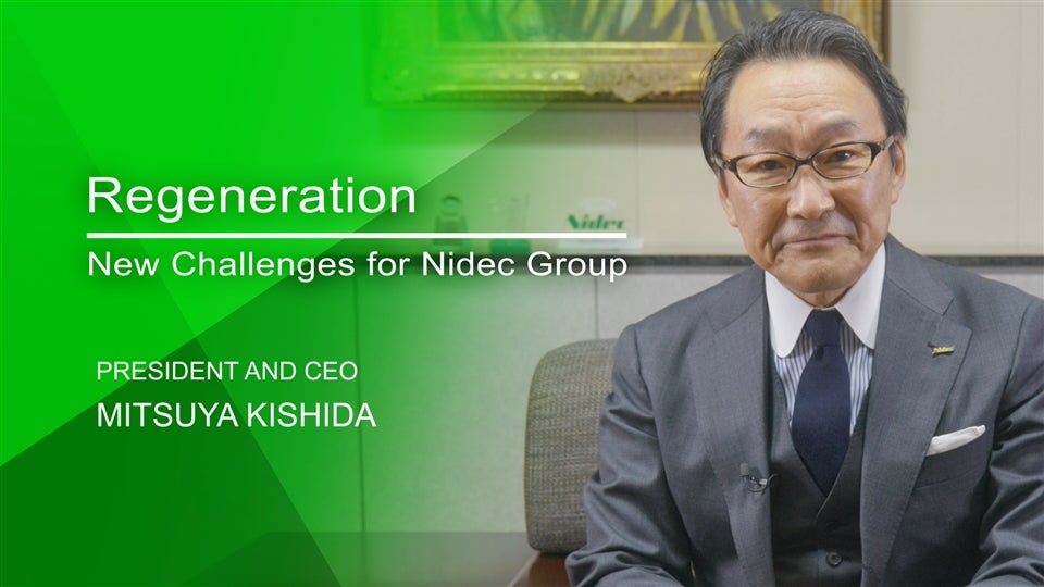 This segment shows messages on Nidec’s corporate attitudes, future vision, and businesses.