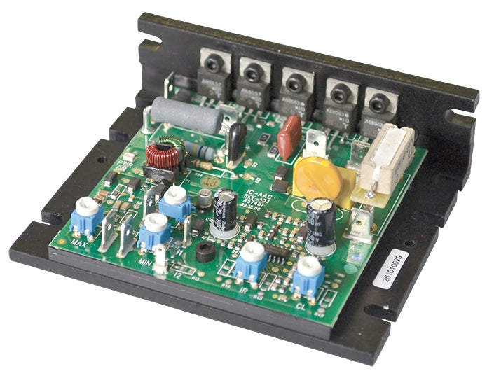 The KBIC Series of DC Drives consist of six models rated for 1/100 to 3 horsepower motors.* All models can be used on a wide range of motor horsepower by inserting a Plug-In Horsepower Resistor®**, which is required to operate the drive. Speed range is 50:1 with load regulation of 1% of base speed. These chassis drives include MOV transient protection, trimpot adjustments for MIN, MAX, ACCEL, IR, CL, and a 5k ohm potentiometer. This drive also contains Auto Inhibit® which provides a smooth, safe start during rapid switching of the AC line.