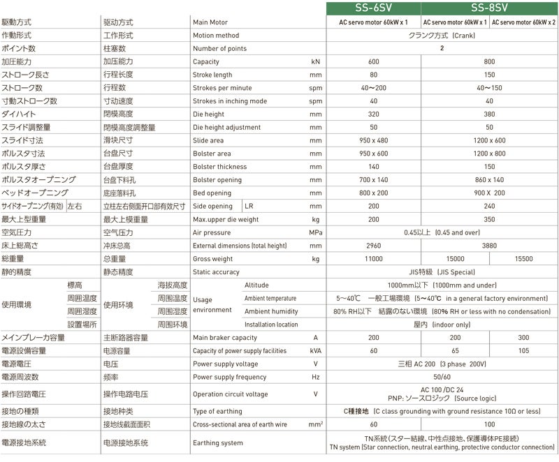 A straight-sided press with crown, column and bed tightened by tie-rod. Suitable for a wide variety of precision forming at low/midium speed, such as connectors and small