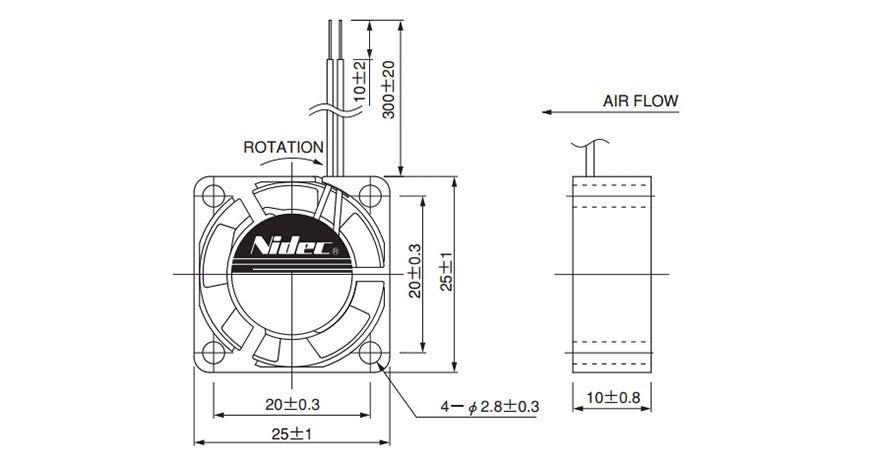General-use DC axial flow fan (25 x 25 x 10 mm)