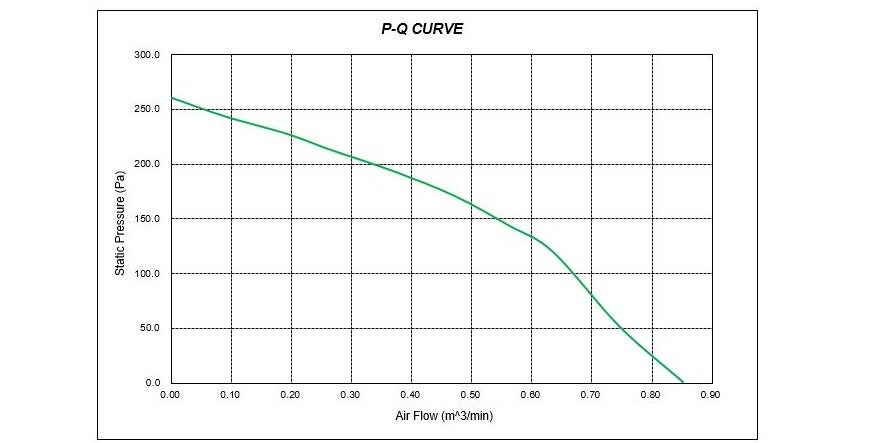 "Sirocco type fan motors can realize the high static pressure characteristics. High pressure airflow from the sirocco type fan makes it possible to achieve high cooling performance and airflow performance even in dense installation locations. The blower outline is 100mm square and its thickness is 33mm. Ball bearings are used to achieve both high performance and long life. "