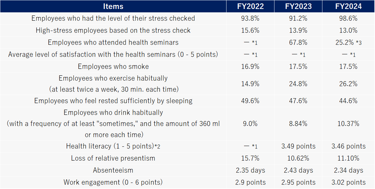 *3 In FY2024, we refined our health promotion program and data collection methodologies, which led to a decrease in the figures.