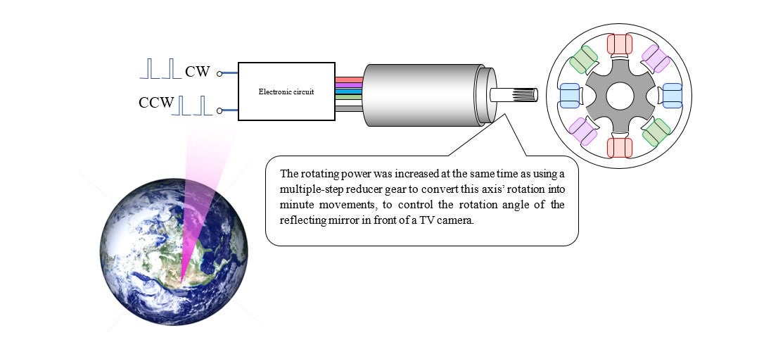 A small number of components and a simple structure are required to make space devices reliable (See Illustration 19⁻6). During the analog-to-digital transition in motor controls, Mr. Egawa used a through-bore method to accurately secure an air gap (the spatial distance between the stator and the rotor) accurately. This is how the permanent-magnet-free stepping motor was born.