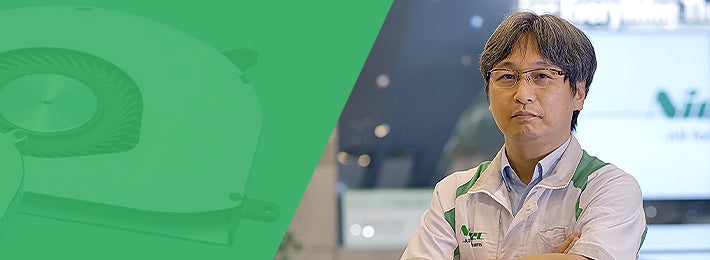 1994年の入社以来、一貫してハードディスク用モータの開発に携わってきた今堀。つねに薄型化の試練にさらされるノートパソコンのハードディスク用薄型モータに挑む。