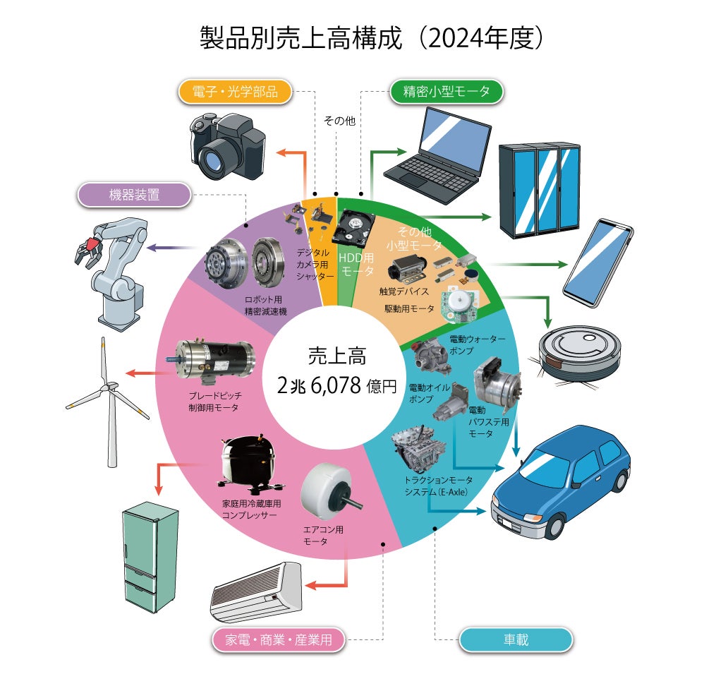 当社は「回るもの、動くもの」をキーワードに社会のニーズに応える次代の駆動技術を創造しています。 |