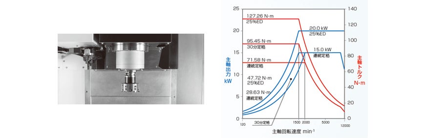 BT40/2面拘束高出力主軸(20kW/15kW)を標準搭載