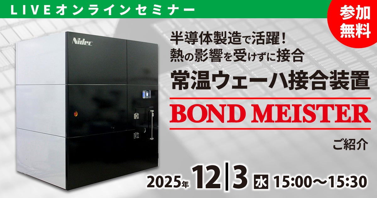 ・常温接合の原理・メリット ・接合実績 ・「BOND MEISTER」のラインナップ ・質疑応答 ※テキストでご質問が可能です |