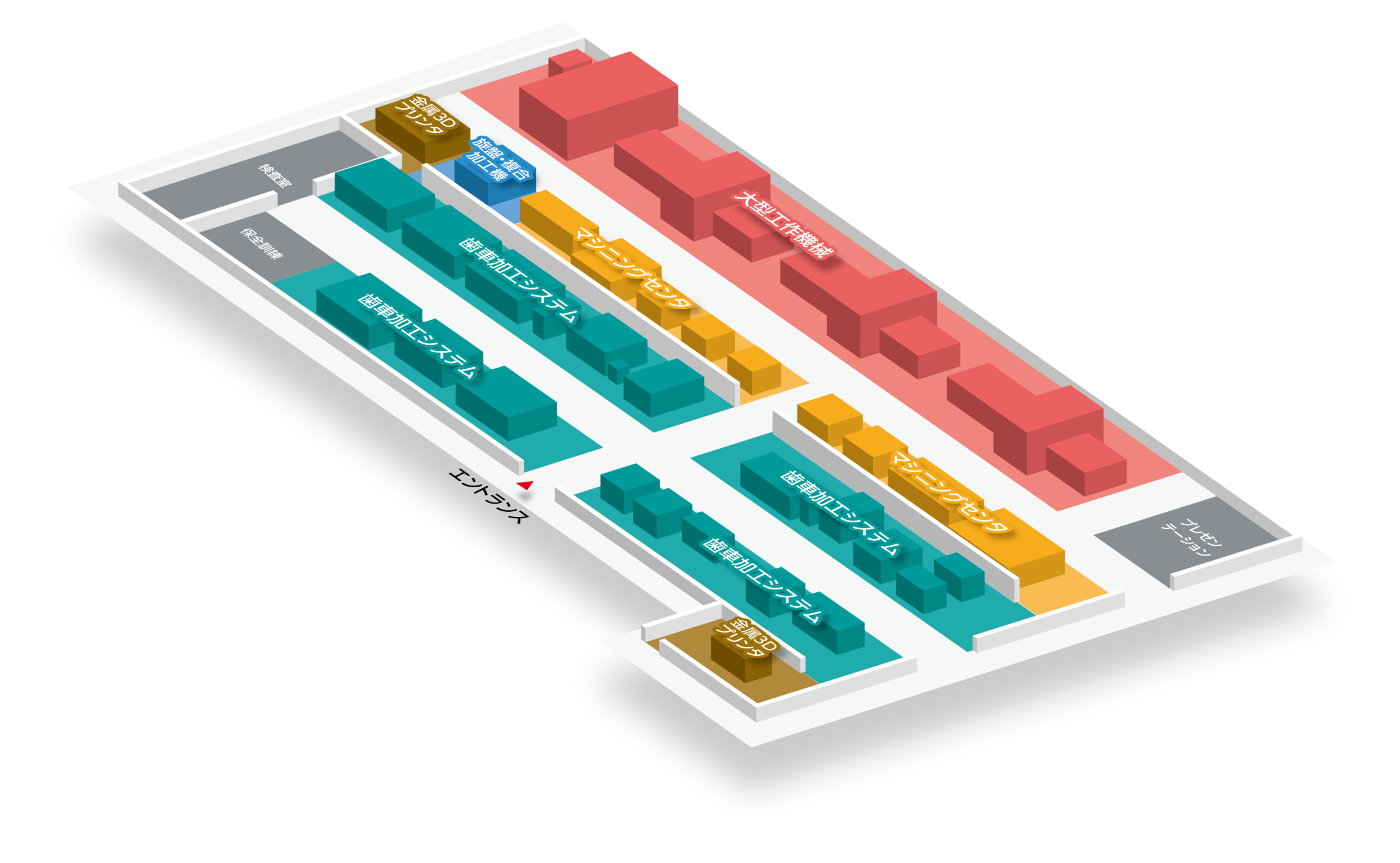 旋盤から歯車工作機械、マシニングセンタ、大型工作機械、金属3Dプリンタに至るまで幅広い製品を網羅的に展示。実機を用いたテスト加工にも対応します。