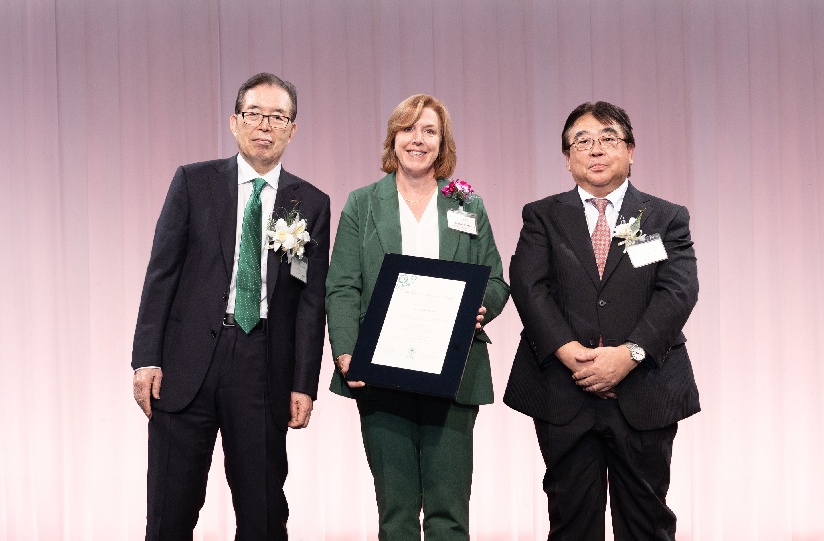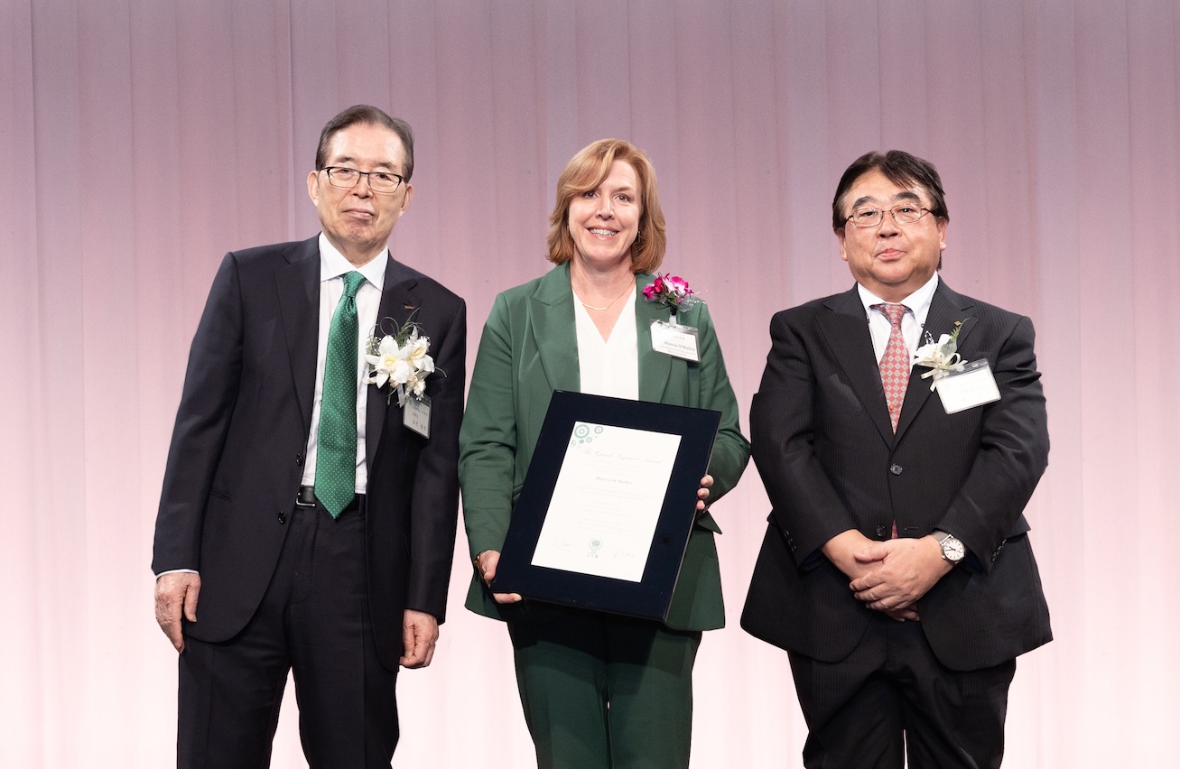 The commendation ceremony began with Prof. Hori, the Review Committee’s Chair, explaining how the winners were selected, followed by the announcement of the Eleventh Grand Nagamori Award winner. Each winner received a commendation certificate and a prize trophy from Mr. Nagamori, President of Nagamori Foundation, and then representing the award winners, Professor O'Malley delivered a speech to express the