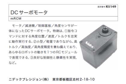 今回ご掲載いただきましたのは、DCサーボモータです。