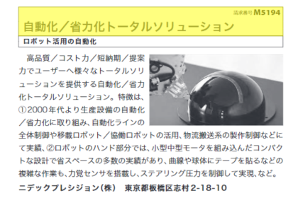 今回ご掲載いただきましたのは、「自動化/省力化トータルソリューション」です。