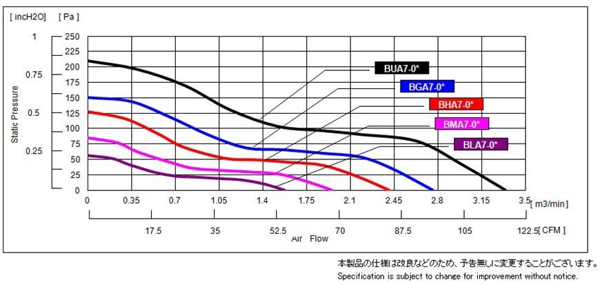 | 最大静圧(inchH2O) | 0.6~0.6 inchH2O |