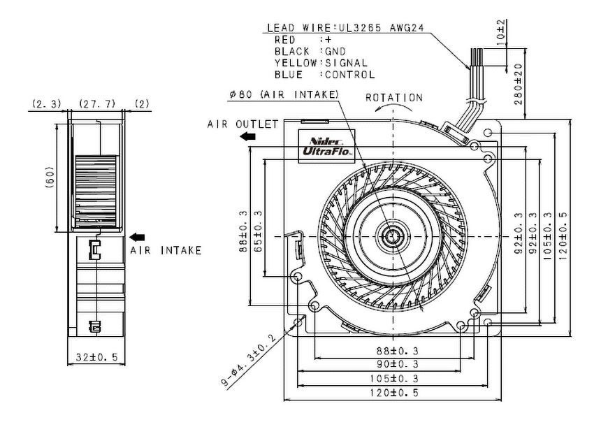 高性能ファンUltraFloシリーズ(120x120x32mm)