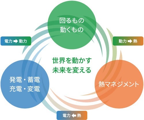 未来を創造する上で重要となるキーワードが「循環型社会」です。これまでも我々は「回るもの、動くもので地球環境に貢献する」、つまりは高性能なモータを供給することで社会課題を解決し、地球環境の保全に寄与していくという理念を掲げてきました。これからは社会全体を一つの大きな循環と捉え、エネルギーの転換に着目することで革新的なビジネスを展開できると考えています。