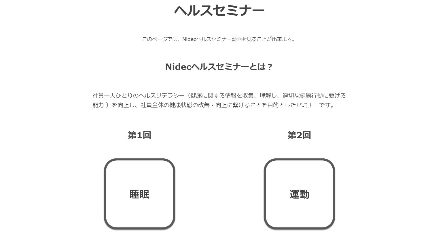 NIDECグループは会社と社員の協力の下、社員がその能力を十分に発揮できる安全快適な職場環境の整備と、社員の安全と健康の増進をテーマに健康経営に取り組んでいます。社内組織を横断する形で構成された健康推進委員会が中心となって健康管理・増進の仕組みを強化している他、産業医による健康セミナー、全社員を対象とした健康意識調査を実施し、健康リテラシーの向上に努めています。さらに国内事業所の敷地内完全禁煙を達成するなど、健康経営を推進しています。