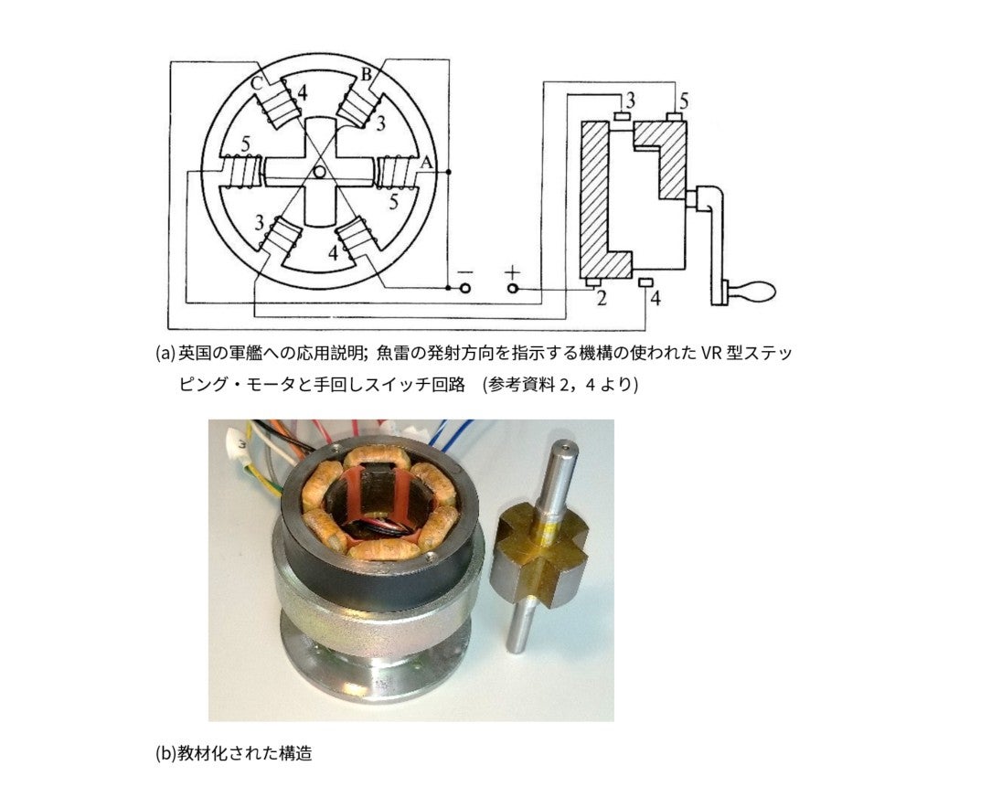 図7(a) は英国の軍艦に搭載されたステッピングのモータの原理です。 (b) は1970年代にこれを基に筆者が教材用として設計し,大田区にあった大東製作所に製作していただいたものです。江川さんはこれを見て,戦後の秋葉原のジャンクによく似たものがあったとのことでした。英国から帝国海軍にこの技術が導入されていたのかもしれません。