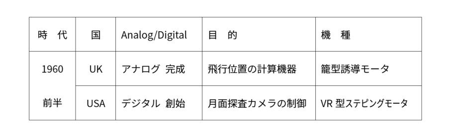 モータに関して不思議を覚えることがしばしばあります。まず,モータのタイプやその設計を論じるときに,永久磁石を使うのか使わないのか?これに言及します。ここにとり上げる事例はこれを使わない2つのタイプですが,それぞれの事情が異なります。Harrierでは姿勢制御に関与する交流サーボモータ(位置決めモータ)であり,1960年代初期でもアナログ半導体素子による精密な直流増幅回路が困難だったので,交流電源で作動する誘導モータ式の位置決めモータが使われました。第14/15回でも論じたように,これは永久磁石を使わないことを利点にしたモータです。他方の月面探査用モータの場合,月面の磁場を乱す可能性を排除するために永久磁石の持ち込みが禁止されたのです。これら2件はどちらも位置決めモータの物語ですが,一方はアナログ制御であり他方はデジタルです。お二方ともにモータ本体の設計が仕事でしたからでしょうか,制御装置がまだ真空管だったのかトランジスタが使えられたかどうかを話題にすることを忘れていました。ちなみに,民間を象徴するのがテレビであり,真空管から半導体素子への転換が当時の大きな事業でした。