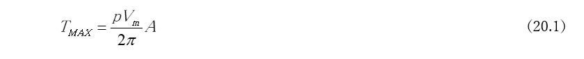 80極(p=40)モータの場合に絞って重量当たりのトルク概算の原理の一つを論じておきましょう。スロット数が多くて,溝開口がなく閉じている理想的な場合には,図20-7 の線図から限界トルクが算出されます。平行4辺形の面積をAとすると理論上の最大許容トルクは次式で決まります。