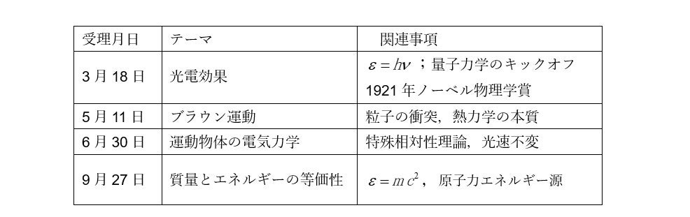 の物理的意味が決定的に変貌しました。以上のことを短く図表にしたものが表20-2と図20-9です。このように, 4論文は三角錐で象徴的に描かれる1個の事柄の4面であると言えそうです。筆者には特殊相対性理論はさまざまなモータの花園のように思えます。